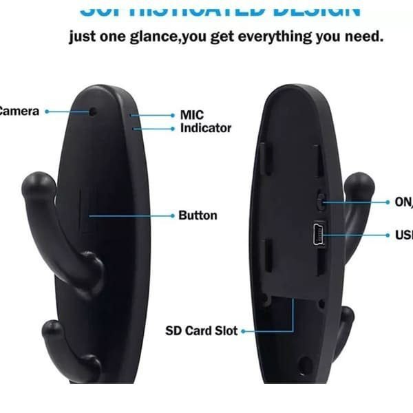 Material: ABS Cores: branco, preto Basic tamanho: 115x36x14mm Quadros por segundo: 30fps Resolucão de vídeo: 1280*960 Pode parecer um gancho de casaco comum, mas a câmera de gancho de casaco hd está equipada com uma câmera hd secreta que permite capturar vídeo de alta definição. Ninguém vai notar que é uma câmera. Detecção de movimento-roupas peg câmera com detecção de movimento; não há necessidade de se preocupar em desperdiçar muito tempo de gravação Gravação em loop, se a memória estiver cheia, a gravação em loop substituirá automaticamente o arquivo mais antigo. Quando o espaço estiver cheio, ele irá substituir o arquivo original. Quando a energia insuficiente é detectada, o arquivo de gravação será salvo e fechado automaticamente para garantir que o arquivo de gravação é seguro. E pode ser jogado no computador pc ou mac. Built-in bateria de íon de lítio recarregável- uma vez totalmente carregada, pode trabalhar por cerca de 120 minutos. Você também pode gravar durante o carregamento, e apoiar 7/24 horas de gravação. Monitoramento multifuncional-pegar golpistas, fraudes e ladrões. Preste atenção aos funcionários, clientes, babá e cuidadores em casas, locais de trabalho, escritórios, hotéis, etc. Embalagem incluída: Excluindo tf e cartão sd 1* câmera do gancho do revestimento 1 * cabo de dados usb
